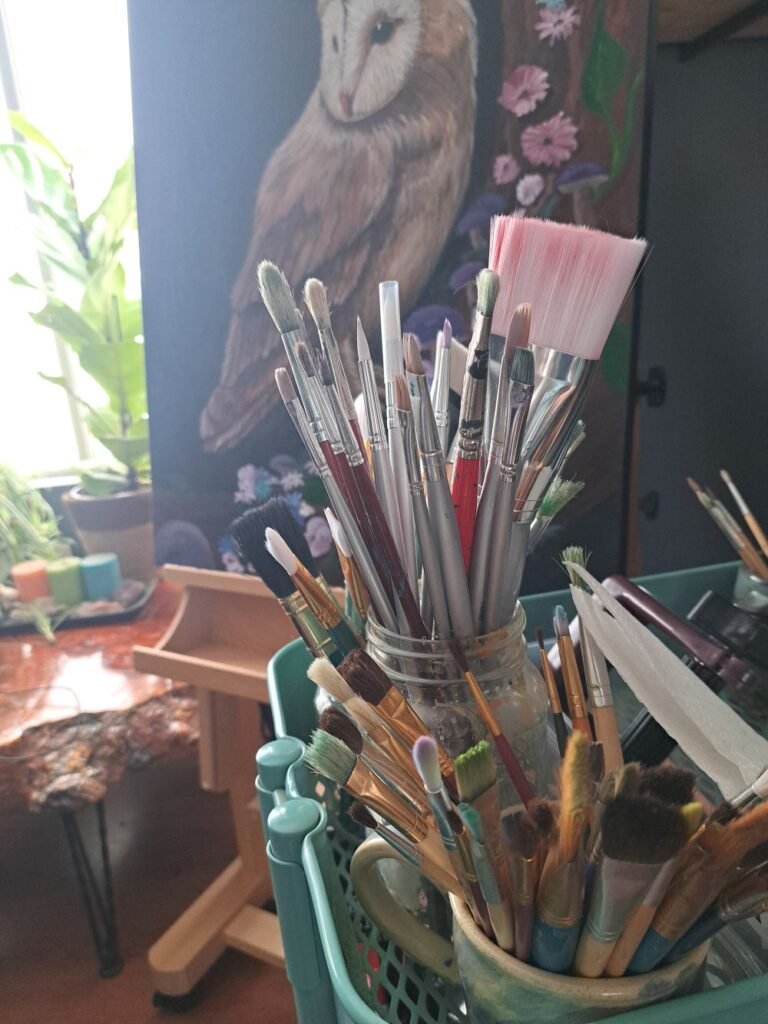 The owl’s role is not to hoard knowledge, but to carry it responsibly. Much like an artist carries the stories of their work to share with others. There is a sacred mission associated with owl energy: to share wisdom when the moment is right. To teach. To guide. To illuminate paths for others without forcing them. To tell that story.